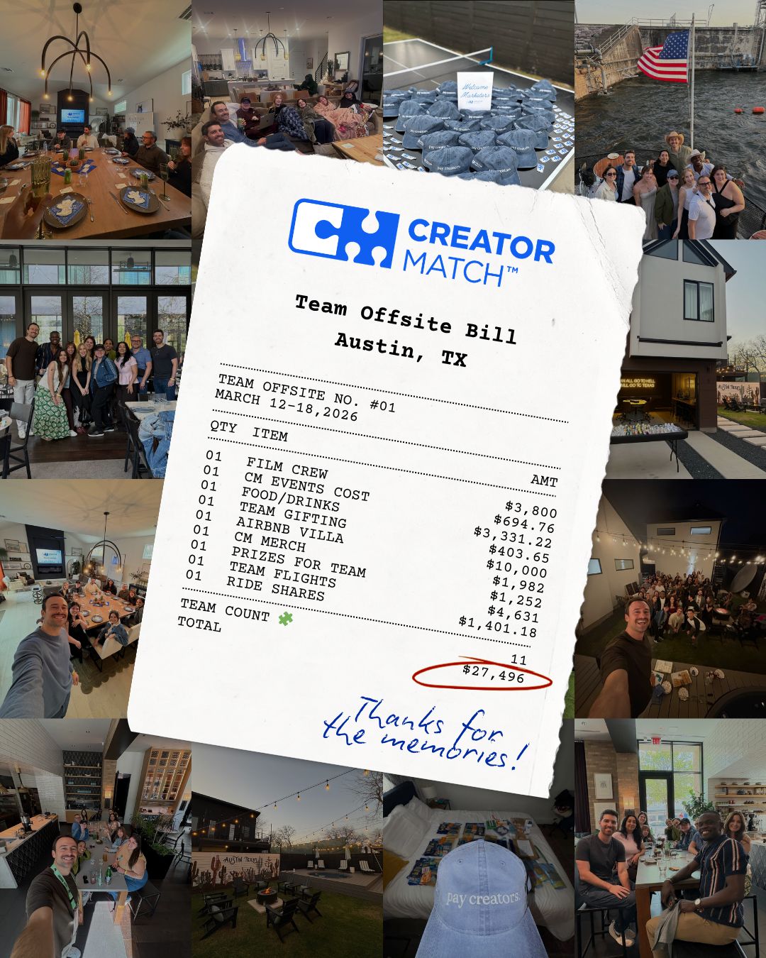 We stacked the offsite on top of SXSW, one of the best creator economy conferences. Because flying 11 people somewhere just for an internal retreat felt like leaving money on the table.